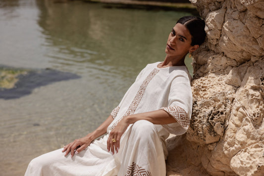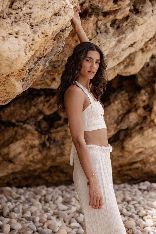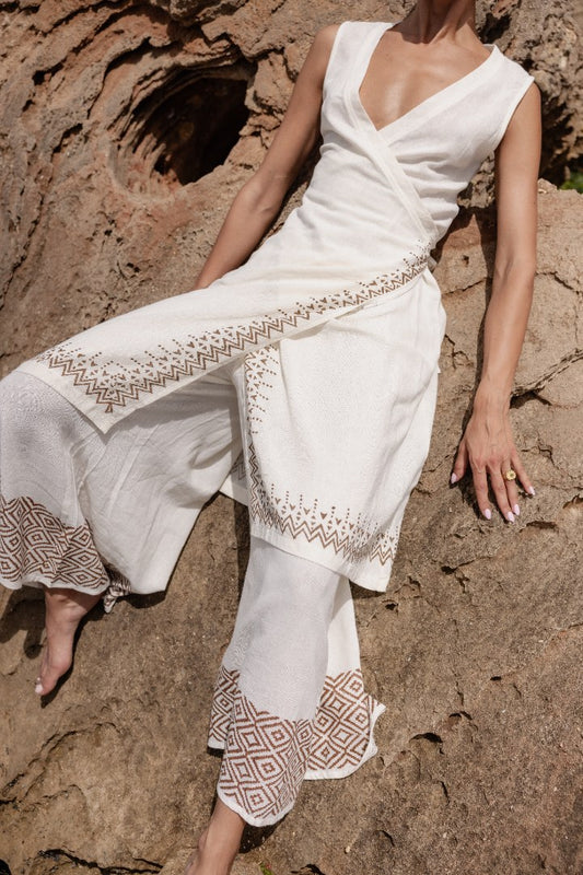 Fluka Set - Linen Crop Shirt & Palazzo Pants